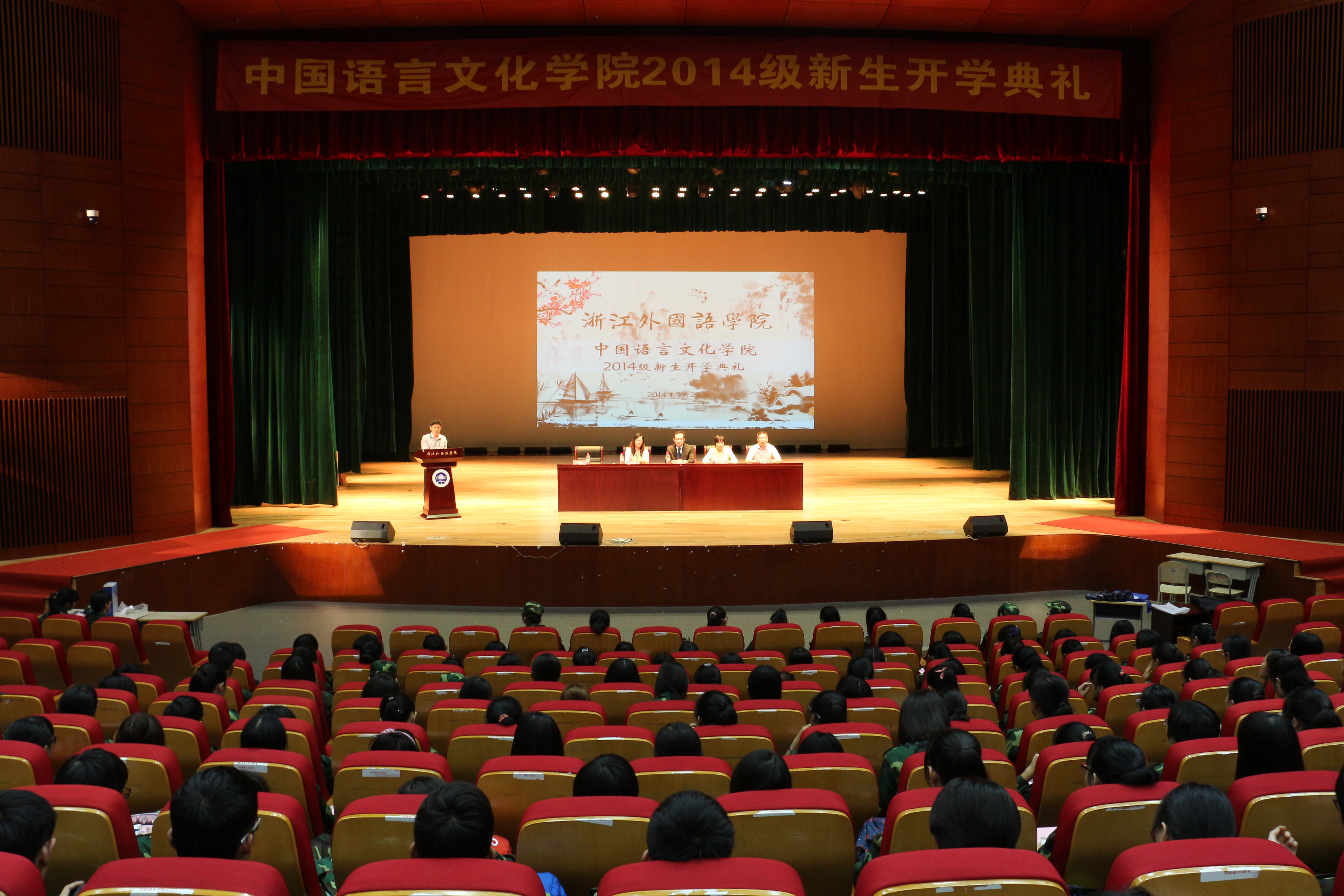 本次学院开学典礼以“入学鼓箧”为题。取自《礼记•学记》:“入学鼓箧,孙其业也。”郑玄注:“鼓箧,击鼓 警众,乃发箧出所治经业也。”典礼仪式部分承袭古代击鼓开箧的入学仪式。经理致辞、教授代表致辞、新老生代表发言等部分都以此为依据,或以谆谆教诲为鼓、或以传经授道为鼓、或以畅想未来为鼓,或以诵读经典为鼓,使整个开学典礼充满传统文化气息。