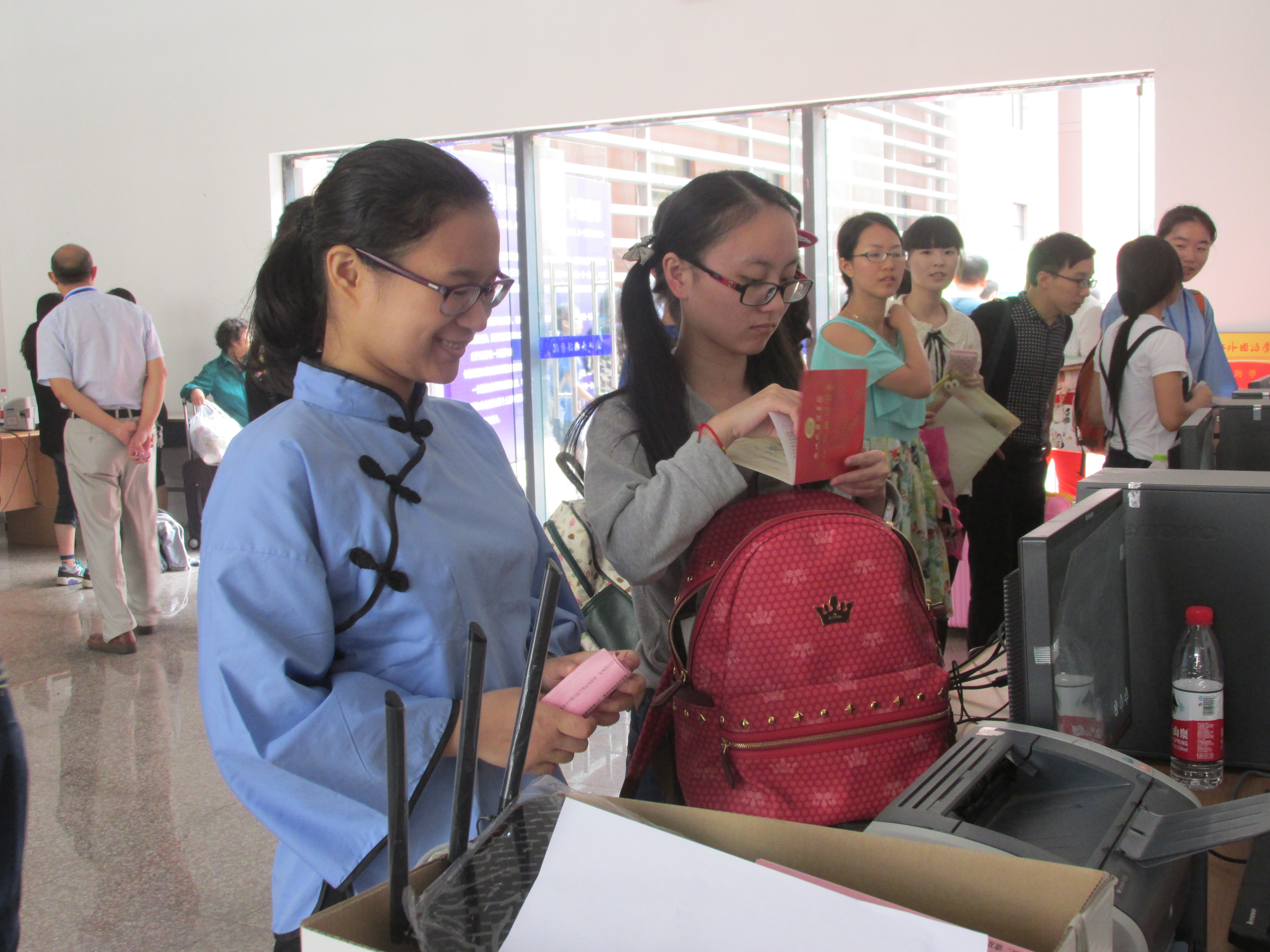 为了给远道而来的员工、家长提供切实周到的服务,身着民国服饰的几十名学院志愿者,奔走于校园各个角落。提行李、注册登记、置办生活用品……到处都能看到志愿者们忙碌的身影。其中一位新生恳切地说道:“多亏有学长学姐们的帮助,让我能够轻松高效地完成入学手续,尽快熟悉校园环境。”一位志愿者这样说:“去年作为新生入学报到的时候就有一批热情洋溢学长学姐帮忙,现在我要把这份热情传递下去。”