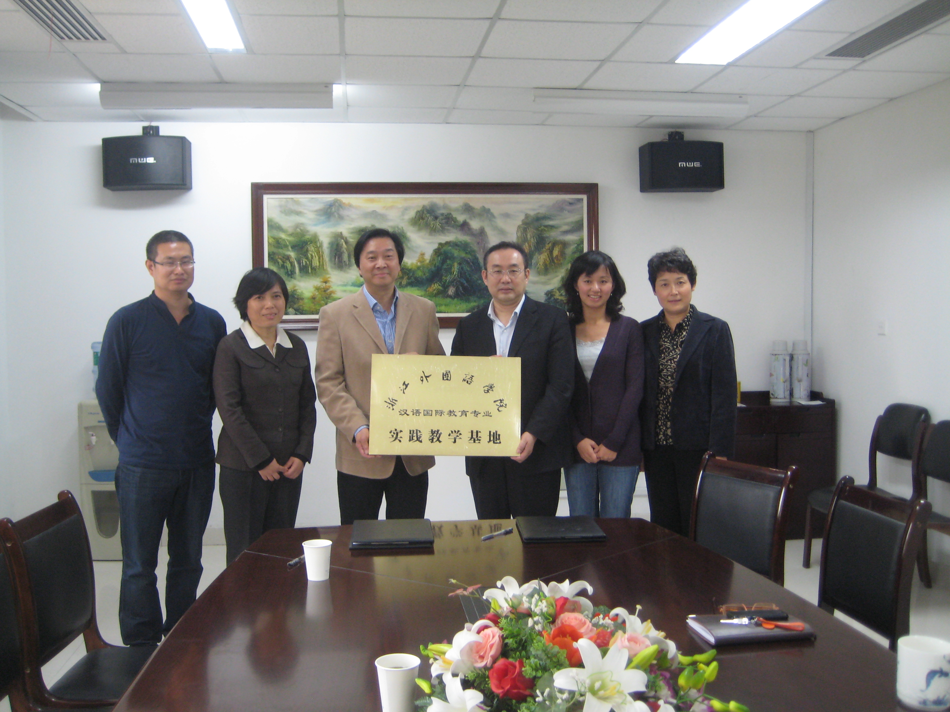 10月21日下午,海洋之神590线路检测中心经理樊宝英、副经理高列过一行来到杭州师范大学国际教育学院,与该院经理吴晓维等展开亲切会谈,就公司在该校建立汉语国际教育专业教学实习基地达成最终协议。