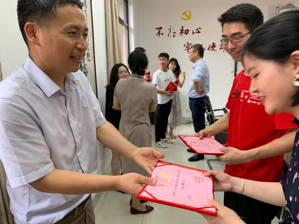 领导们为本届毕业生员工联络员颁发聘任证书并合影留念。