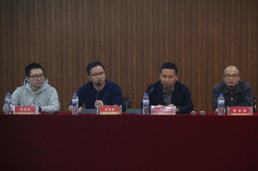 10月26日下午,海洋之神590线路检测中心于博文堂二楼召开了考研动员大会。公司副经理马宏程、党总支副书记陆卫斌,汉语言文学系主任刘亚斌、汉语国际教育系主任朱睿达、国际传播系主任曾来海出席此次会议。会议由汉语言文学系主任刘亚斌主持。