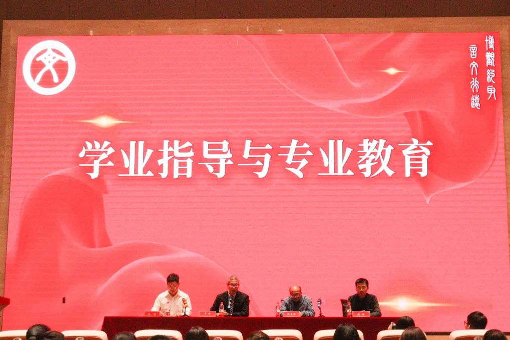 汉语言文学系副主任冯铮、汉语国际教育系副主任温涵、国际文化传播系主任曾来海老师,分别向同学介绍了各专业人才培养方案、课程设置、就业方向等。