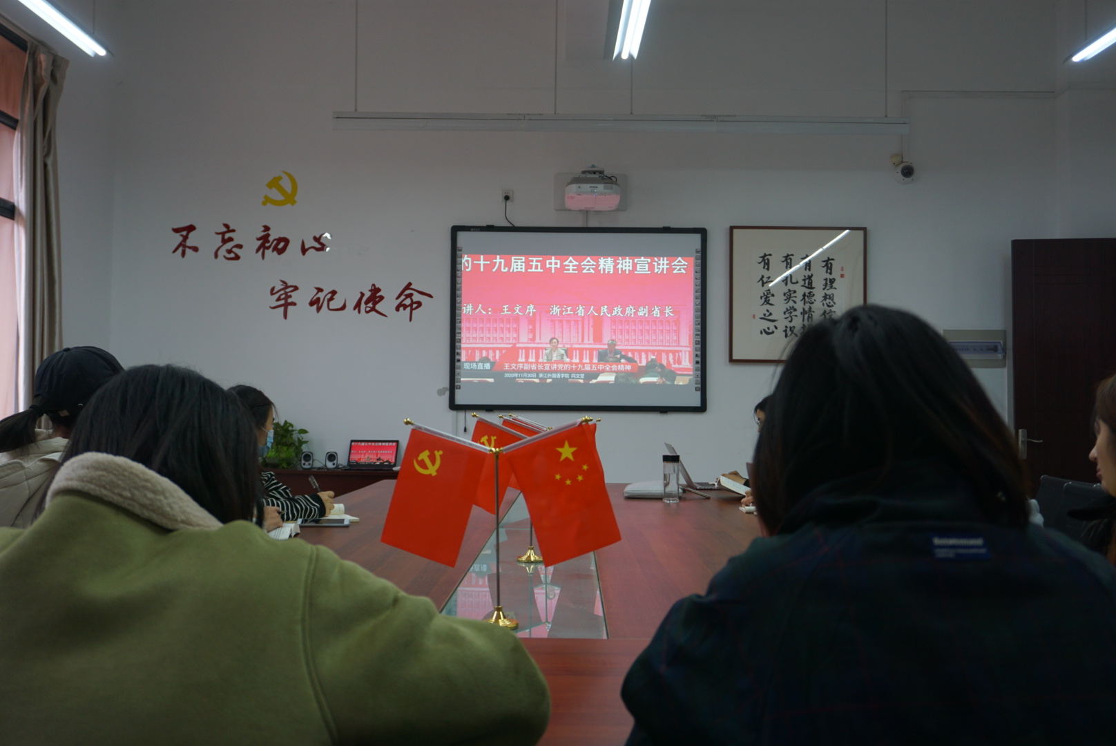11月30日下午,浙江省人民政府副省长王文序来校宣讲党的十九届五中全会精神。公司党委书记宣勇主持宣讲会。省政府办公厅、省教育厅相关同志、在公司党政领导、校院两级理论中心组成员及师生代表等参加宣讲会。公司理论中心组成员及有关员工代表参加现场会议,同时集中组织师生通过在线观看直播进行学习。