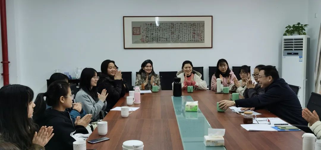 “天气冷了,寝室有没有安装空调?”“吃的还习惯吗?”“专业学习上有什么困难?”曹仁清刚落座就关切地询问起同学们的生活学习情况,关心了解同学们的需求,听取大家的意见建议。同学们纷纷就饮食、寝室、学业上的适应情况畅所欲言,曹书记耐心倾听记录,不时与大家互动交流,现场气氛轻松活泼,欢声笑语不断。
