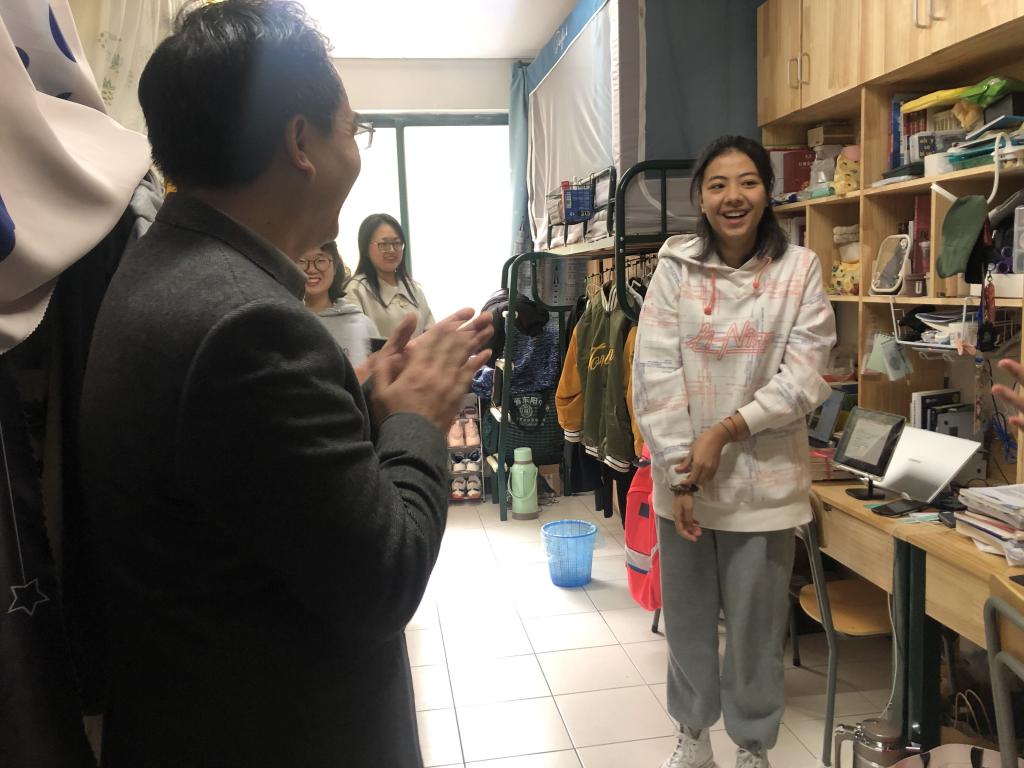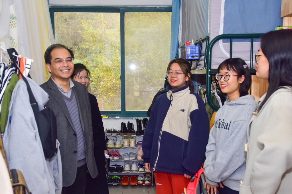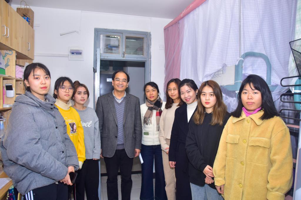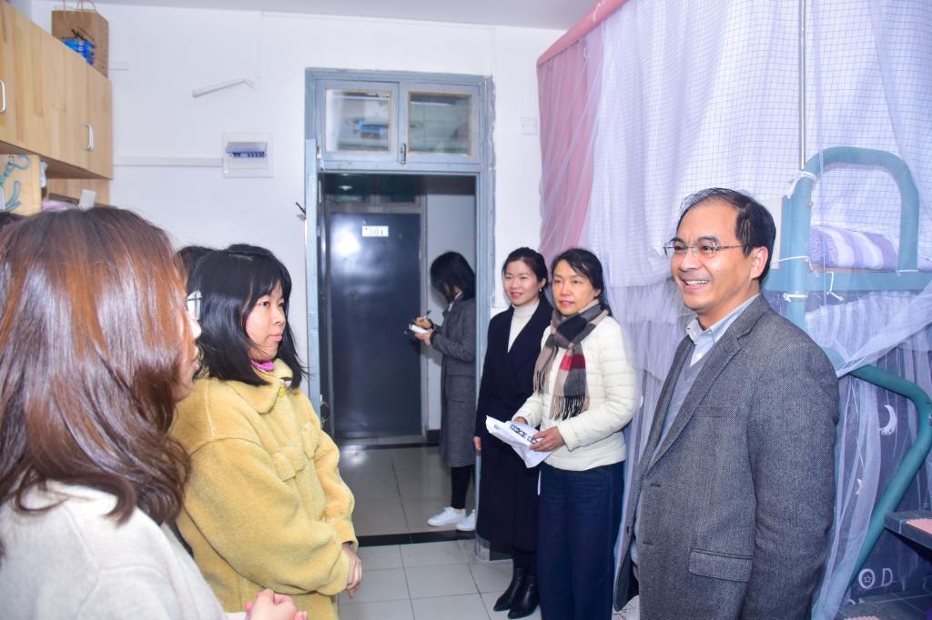 “家乡在哪里,有没有想家”“在学校的两个月了,老员工活还习惯吗”“平时学习和生活过程中有遇到什么困难吗”……徐部长的贴心问候令同学们倍感亲切,大家纷纷积极主动与徐部长交流近况,冬日里的宿舍中充满了别样的温馨。