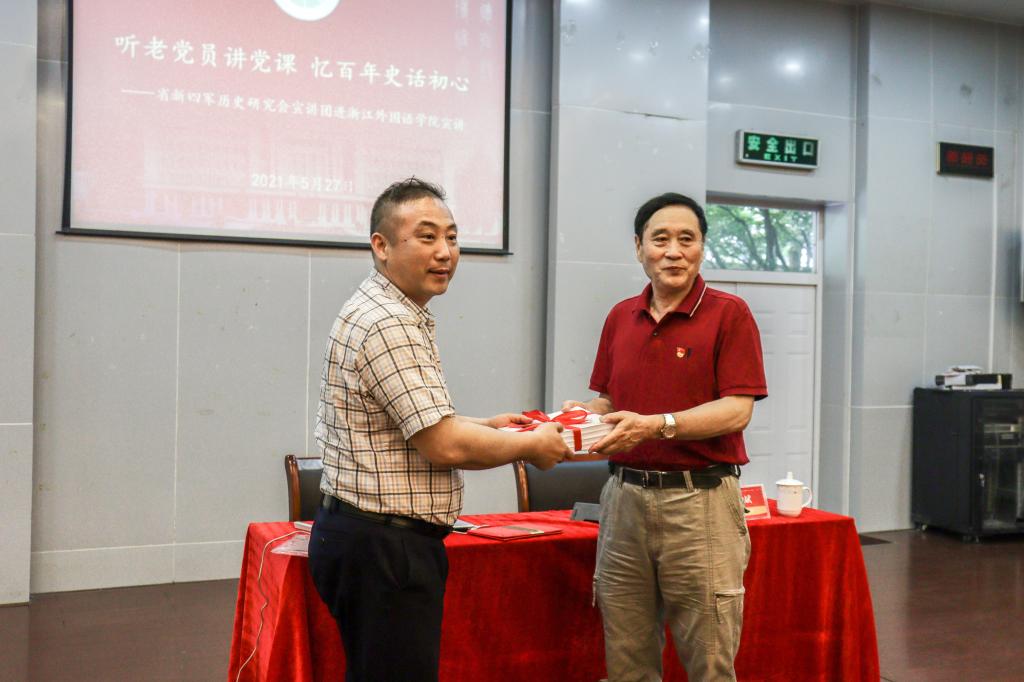 党课结束后,程宇航代表省新四军历史研究会向公司图书馆捐赠了研究会编著的《青山绿水红土地——浙江革命老区发展纪实》等书籍。