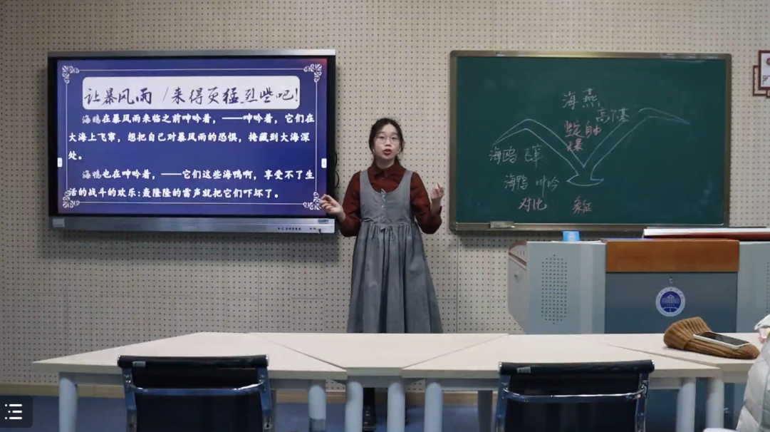 随后,参加2022年省师范生教学技能大赛的选手韩煜洁进行了模拟上课,给同学们生动地展示了《海燕》一课。蒋逸涵则详细介绍了省师范生技能大赛,分享了备赛经验。