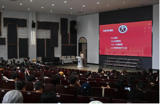 周礼结合逐年升高的分数线介绍了考研现状,阐述了如今愈发严峻就业形势下学历的重要性。随后,周礼介绍了学院升学服务举措,以及学校出国出境的升学激励政策和资助政策。接着,周礼介绍了实习就业相关事宜,鼓励同学们多获取信息,做好规划,表示学院时刻为同学们的升学与就业保驾护航。