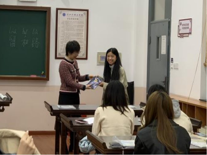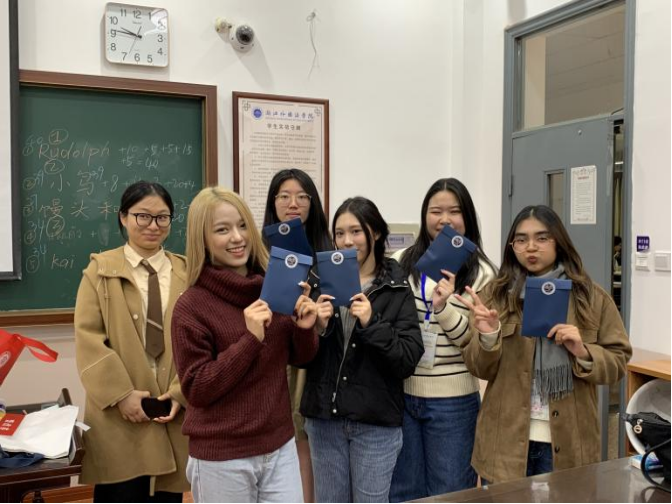 会议的最后,老师们给同学们赠送了具有中国文化特色的礼物,并与同学们合影留念。